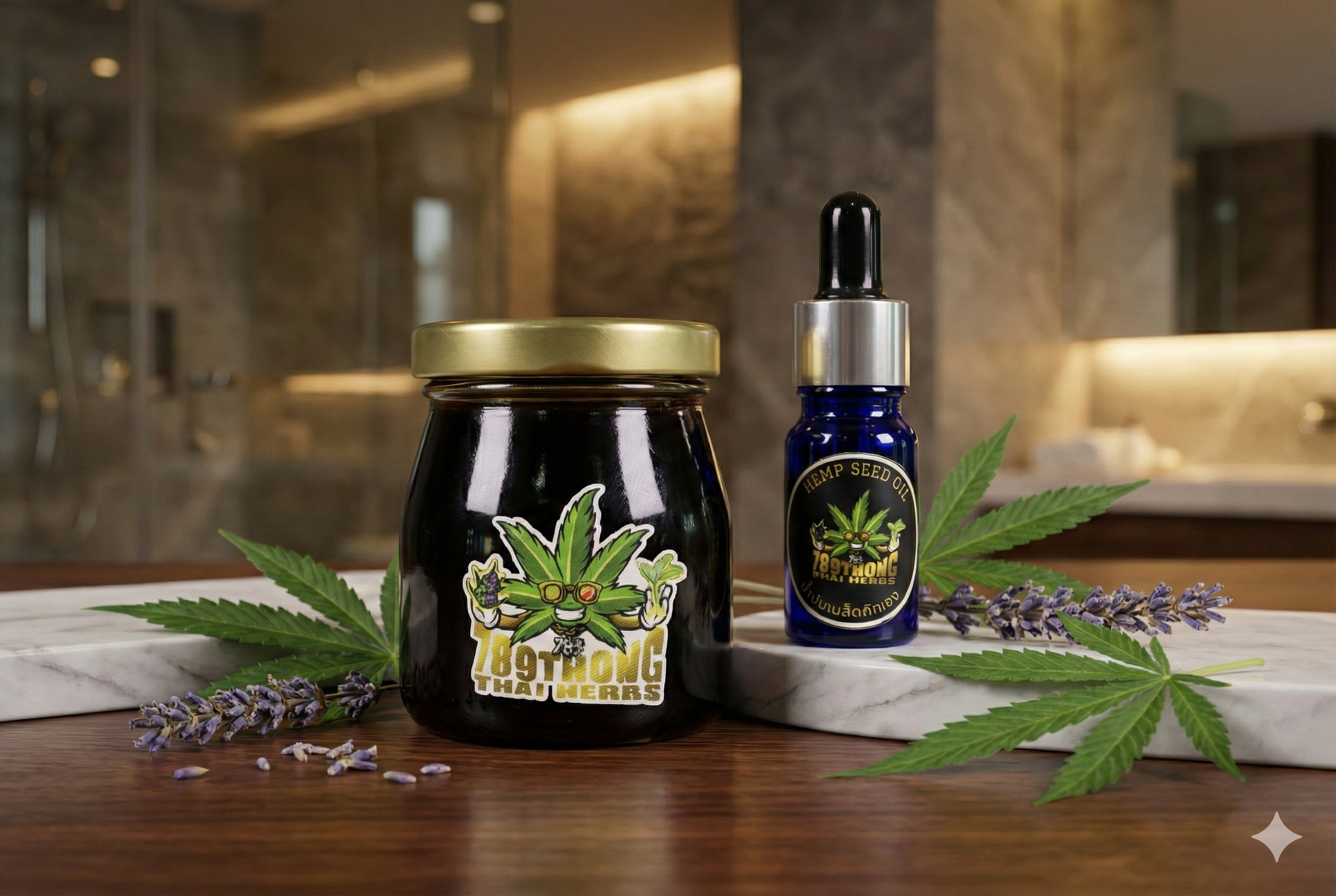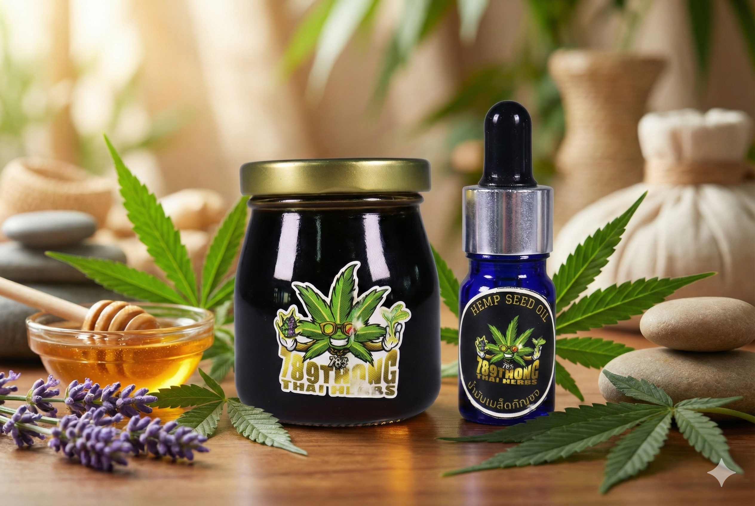 เซ็ตบำรุงผิวธรรมชาติ จาก 789 Thong Thai Herbs รวมผลิตภัณฑ์สมุนไพร 2 ชนิด ได้แก่ น้ำมันเมล็ดกัญชง และยาหม่องสมุนไพรกัญชง เหมาะสำหรับผู้ที่ต้องการดูแลผิวแห้ง พร้อมผ่อนคลายกล้ามเนื้อในชีวิตประจำวัน